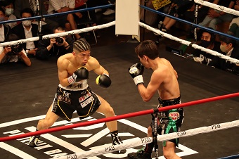 ただ、1ラウンド目の田中は好戦的だったコメントとは裏腹に、手を出さなかった。久しぶりの対サウスポーかつ、長身でリーチのある橋詰と向き合い、まずは距離感を確認した。しかし、その“作業”も本人曰く「1ラウンドの終わり頃」には終了した。
