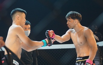 2ラウンド目もケージ際を中心に試合が展開。しかし、計10分間の攻防は互いに決定打を奪えぬまま、終了した。判定は割れた。3人のジャッジは1人が20-18で泉、もう1人が20-18で野村を支持。もう1人は19-19だが、マスト判定により野村を支持した。これで野村は2連勝、泉は2連敗となった。