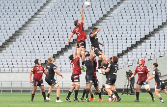 (写真:2m超のピアス<赤5>、ディアンズがいるBL東京のラインアウトは武器になっている)