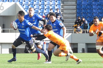 両チームがPGで3点を追加した後の28分。山沢は約25mの位置でDGを決めた。これで2試合連続DG。さらにトライ、PG、DG、Gと4種類すべての得点パターンを挙げる“フルハウス”を達成した。熊谷出身のファンタジスタの大活躍で23-15とリードを奪った。試合終了間際にWTB長田智希がトライ、山沢がゴールを決めて30-15でノーサイド。白熱の首位攻防戦は、3シーズン実質無敗(昨季は2試合で不戦敗)の埼玉WKが制した。
