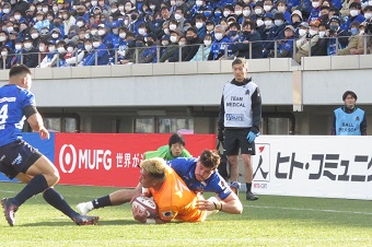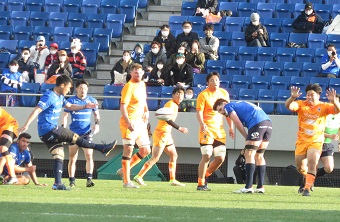 一方、試合前のコイントスで風上を選んだS船橋・東京ベイもフィジカルを生かし、圧力をかけてくる。埼玉WKはトライこそ与えなかったが反則がかさむ。29分、33分、39分とショットを選択。オーストラリア代表76キャップを誇り、リーグワンでも今季得点ランキングトップをひた走るフォーリーが正確にゴールを射抜いていく。前半は12-10とS船橋・東京ベイが逆転して終わった。