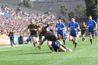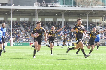 東京SGに尾﨑のトライ、クルーデンのゴールで一旦は14点差に戻されたが、埼玉WKの猛攻は止められない。13分、ラインアウトからのモールでボーシェーがこの日2個目のトライ。その2分後には東京SG中村のパスをインターセプトし、抜け出したCTBディラン・ライリーがインゴール中央にボールを置いた。いずれもコンバージョンキックを松田が確実に決めた。