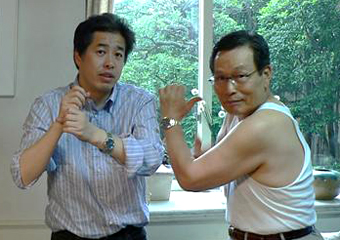(写真:中西氏から身振り手振りで説明を受ける当HP編集長・二宮清純)
