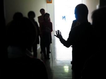 志村: 実際には新しい開催場があるわけではなく、今後どうなるのか分からない状況でしたが、終わりという言葉を使うと今まで紡いできたものが途切れてしまう。それよりも、「これまで停留していた港から次の港を探す航海に出る」との意味で、"出発"の方がいいと考えました。地図も羅針盤もない参加者や関係者からの温かい励ましの声を原動力に、この航海を続け、浅草橋にあるビルの3階を一時期お借りして、そこでは一般開催はせずに暗闇を使った企業研修のみを行いました。それから3年後に現在の竹芝に移ったのです。外苑前時代に出会った当時JR東日本にお勤めだった表さんとおっしゃる方が「一緒に次の場所を探しましょう」と言てくださったんです。そのご縁でここに。本当にたくさんの方から応援していただき今があります。