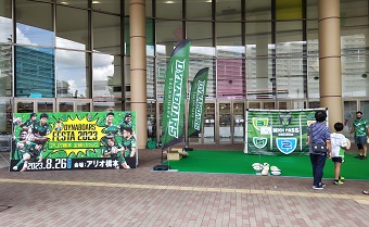 相模原DBが8月最後の週末のショッピングモールをジャックした。入り口付近に体験ブースを設けて来場者を出迎えた。そのほかモール内でのトークショー、公開記者会見、公開番組収録、スタンプラリーなどイベントも盛りだくさん。特設のグッズ売り場には、ダイナメイト&ウリボアーズ(相模原DBファン、サポーターの愛称)が列をなしていた。その盛況ぶりは、アリオ橋本に約5000もの人が詰め掛けたことからも分かる。この日スタートとなった新シーズンのファンクラブ入会&更新も昨年を上回るペースだったという。