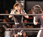 5月19日、東京・歌舞伎町の新宿FACEにて開催された『SMACK GIRL2007〜最強はUSAだと女王は言った〜』。メインは高橋洋子(巴組)×アリシア・ミーナ(米国)の第3代スマックガール無差別級女王決定戦。このイベントで、中井は第3試合に登場、真武和恵(和術慧舟會東京本部)と対戦した。