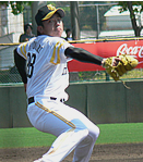 (写真:ソフトバンク打線から三者連続三振を奪った愛媛・梶本)