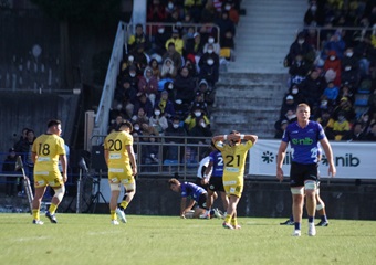 前半20分間はほぼ自陣に押し込まれる展開。4分のLOサム・ダリーのトライを皮切りに、計3本のトライを許した。30分にFB松島幸太朗のトライで一矢を報いたものの、後半は4トライを与えてしまった。アタックでは速いパス回しで活路を見出したかったが無得点に終わった。
