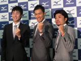 陸上の北京五輪代表に決まったミズノ所属の3選手が30日、記者会見を行い、五輪への意気込みを語った。シドニー、アテネに続く3度目の五輪出場となる男子短距離の末續慎吾は「子どもの頃からの夢が3回も叶った。その試合で、自分がどれだけ楽しめるか。いつもと違う気持ちで臨めると思う」と語る。日本選手権の男子200メートル決勝では後半に失速し3位に終わったが、「日本選手権21秒16の僕が、五輪へ向けてどう変わっていけるか。気持ちは前向き」と明るい表情で話した。