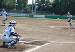 「切り替えていきなさい」。大國監督は坂田那己子投手と藤原未来選手のバッテリーにそう告げたが、踏ん張りきることができなかった。坂田投手は次打者をストレートの四球で出し、再び満塁としてしまう。ここでシオノギ製薬が満を持して送った代打の切り札に、2点タイムリーを打たれ、同点とされてしまった。