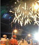 5年ほど前までのホノルルは、とりあえずマラソンにチャレンジする人のためのもの。大会というより、マラソンのイベントという感じだった。コース上を見ても、普段からランニングをしている雰囲気のしない人が多く、大会に向けた準備などほど遠い参加者がうようよしていた。「卒業記念に皆で走りに来ました」的な参加者や、「まあ一度くらいはホノルルマラソンを」というような、いわば記念受験的な感じだったのだ。当然、記録も悲惨な状態で、8時間以上かけて走る、いや歩く参加者が目についた。(写真:花火の中をスタートしていく参加者)