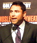 メイウェザーのパンチでモズリーが深いダメージを受けることは考え難い。一方でいかにメイウェザーといえども、モズリーの波状攻撃を完璧にかわし切るのは至難の業だ。少なからず被弾するシーンもあるはずで、その時、未知数のプリティーボーイのタフネスが試されることになる。そこでメイウェザーがどんな反応を示すかは、筆者が推測できる範囲を越えている。(写真:プロモーターとしてボクシング界の顔であり続けるデラホーヤも忙しい日々が続きそう)