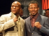 ラティーノ層の後押しがなければ観客動員、ペイパービュー売り上げが苦戦するのではという疑いもあったが、発売から15分で14000枚のチケットをすでに売り上げたという。今週火曜から開始されたプロモーションツアーでは両ボクサーがつかみ合いを演じる場面もあり(真剣だったかは疑問だが)、一般の興味をさらに煽った。この「準決勝第2試合」は、本番が近づくにつれてアメリカ国内ではかなりの注目度を集めることになりそうである。(写真:メイウェザー(左)対モズリーはボクシングファン垂涎のカードだ)
