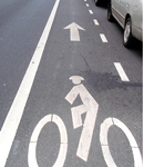 一番盛り上がったのが「自転車はどこを走るのか」という問題だ。軽車両である自転車は車道の左端を走ることになっているのだが、実際はこれがなかなか浸透していない。たとえ知っていても、ママチャリで車道を走ると怖い思いをすることがあるし、お巡りさんでさえ歩道を走っていたりする。車を運転する方も「車道を邪魔するな」といわんばかりにクラクション鳴らしたり、幅寄せしてくる輩がいる。まず、自転車に乗る人がそれを認識することは当然必要なのだが、それ以上に社会全体が「自転車は車道を走るもの」ということを理解しなければ、安心して車道を走ることなど不可能だろう。子供たちへの教育はもちろんだが、大人にもこの常識を訴えかけていくことが必要だ。(写真:ハワイにおけるバイクレーン)