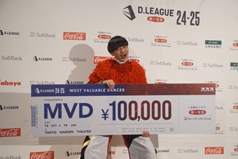 5日、日本発プロダンスリーグの「第一生命 D.LEAGUE 24-25 REGULAR SEASON ROUND.4」が東京ガーデンシアターで行われた。開幕から無敗(2勝1敗)のdip BATTLES(ディップ バトルズ)はBenefit one MONOLIZ(ベネフィット・ワン モノリス)を5対1で下し、首位浮上。ROUND.3終了時点で今季未勝利だったDYM MESSENGERS(ディーワイエム メッセンジャーズ)はLIFULL ALT-RHYTHM(ライフル アルトリズム)を5対1、FULLCAST RAISERZ(フルキャスト レイザーズ)はMedical Concierge I’moon(メディカル・コンシェルジュ アイムーン)を破り、今季初白星。これで全14チームが今季勝利を挙げた。前ラウンドで初勝利を挙げたKADOKAWA DREAMS(カドカワ ドリームズ)はavex ROYALBRATS(エイベックス ロイヤルブラッツ)にSWEEP勝ち。2位に浮上した。このラウンドのMVD(Most Valuable Dancer)には、エースパフォーマンスを任され、DREAMSのSWEEP勝ちに貢献したKELOが選ばれた。