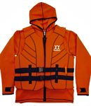 山本: たとえば、これにICチップを埋め込んだり、QRコードで、本人の名前や住所、血液型、アレルギーの有無、連絡先などの情報を登録しておけば、すぐに身元が判明し、医療処置も直ちにできます。もし、海に流されても塩水で発電できる海水バッテリーを内蔵することでフラッシュライトを光らせて居場所を知らせたり、GPS機能チップで空から居場所を追跡できればと思います。今回発売した胴衣にはQRコードを標準で装備してます。このQRコードの情報は弊社で大阪、東京、岡山にバックアップデータを持っていますから、緊急時にもデータを守れるシステムになっています。