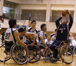 キュッ、キュッ、キュキュッ……。体育館いっぱいに鳴り響く、バスケットシューズさながらのこの音は、車椅子のタイヤの音だ。選手たちが車椅子をストップさせたり、ターンをさせたりする度に高いキーの音がこだまする。
