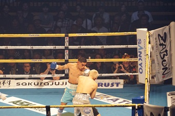 ジャブで刺しつつ、ボディやフックで叩く。しかしマルティネスは得意の接近戦で回転の速いパンチを繰り出してくる。どちらが取ったと言えないラウンドはあったものの、井岡の顔を跳ね上げられるような場面もあり、劣勢もあり得る展開となった。