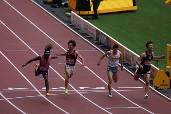 予選はギリギリの5番目で通過。「最初のところだけ絶対外さないようにとスタートラインに立ちました」と栁田。今季は4月の日本学生陸上競技個人選手権大会で10秒09。5月の関東学生陸上競技対校選手権大会(関東インカレ)では追い風参考記録(4.5m)ながら9秒95をマークしていた。