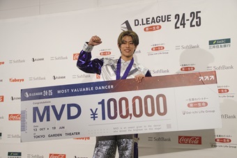 「みんなが完全優勝と私たちに期待していただいた。それが叶ったので、“ここから何するんだ”とワクワクしてもらえるような活動を絶対にしていきます。そしてD.LEAGUEを盛り上げていく。他のチームも素晴らしかった。ジャッジ、ディレクター、プレーヤー、お客さん、ケリーさん(MCのケリー隆介)の全員でダンス、D.LEAGUEを盛り上げていきたいと思います! 宜しくお願いいたします!」