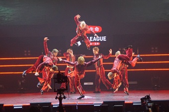 7人がつくった花道をゆっくりと歩いてきたTAKUMIは、デジタルサウンドに乗り、キレのあるポッピンダンスを披露。最後は正面を向いて、挑発的にニヤリと笑った。そのまま8人が抜群のコンビネーションを魅せながら終演を迎える。ラストは全員が前方で掴んだ拳を握りしめ、観客に背を向けた。「出し切った。勝負の世界なので、相手もいること。