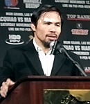 (写真:普段は愛想の良いパッキャオもマルケス戦後は言葉少なだった)