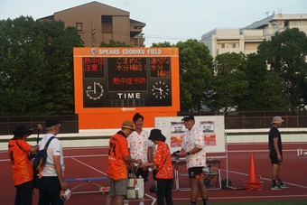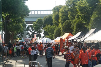 東京都の猛暑日が続いていた8月の第4土曜日。江戸川区清新町にある陸上競技場は、夏祭りの会場と化していた。スピアーズがネーミングを「オレンジアーミーフェスティバル」から「スピアーズ夏祭り」に変えたのは、その名称からコアファン向けのイメージを持たれるのを避けるためだ。いずれも入場は無料。気軽に入れる、参加できる、帰れるイベントだ。