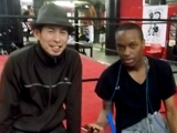 そしてその難しい作業をなし得たとき、チャーリーに真の意味での“世界進出”の道が開ける。具体的には、ディベラと複数戦の契約を結び、大舞台での試合をこなし続けるチャンスが手に入るかもしれないのだ。(写真:八王子中屋ジムの中屋一生プロモーター(左)とチャーリーの弟エリック。多くの人々の夢がチャーリーの背中にのしかかっている)