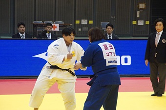 決勝は昨年の全日本体重別で敗れた青野南美(福岡県警察)が相手だった。2分47秒、青野の内股をかわし、内股透かしで有効を奪った。そのまま横四方固めで抑え込み、一本勝ちを収めた。