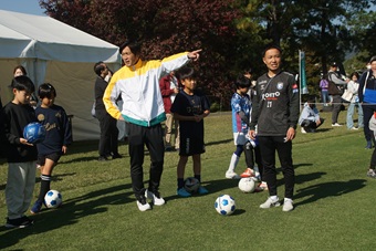スナッグゴルフの講師はJLPGAティーチングプロが務めました。午前の部のサッカー講師はガンバ大阪のスクールコーチが担当しました(午後の部はセレッソ大阪のスクールコーチ)。また、特別ゲストとして、ガンバ大阪などで活躍し、日本代表としてドイツワールドカップ(W杯)に出場した加地亮さんが参加しました。