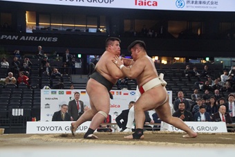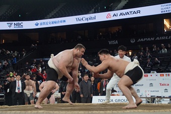 審判役として土俵下でエキシビションマッチを見守った白鵬氏は、「目指せ四大大会、グランドスラム構想の一部としてやった。下から見ていても非常に緊張感があった」と感想を述べた。今秋から各国を回り、出場選手のスカウトや育成に取り組む考えも示し、「来年はもっと大きなものを見せたい」と意気込んだ。