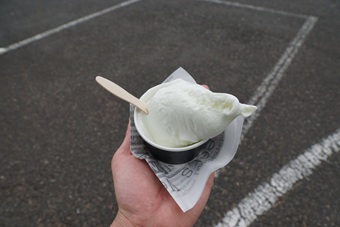 店長オススメの「沖縄塩ミルク」は、口に運ぶと最初はミルクの濃厚さを感じますが、後味は少しの塩っけが口に広がる一品(逸品)でした。