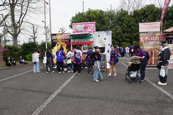 4月5日、味の素スタジアムで行われた地域リーグラウンド第9節、FC東京対FC町田ゼルビアの一戦の前には、明治安田とFC東京がタッグを組み、「J活デー」を開催しました。スタジアムに隣接する赤青パークアジパンダ広場(南側広場)では「FC東京のオリジナルベースボールシャツ配布(抽選約1000名)」が行なわれました。他にも、アジパンダ広場とあじペン広場(北側広場)の2会場では「明治安田 Presents TOKYO SWEETS DAY」が開催され、投てき練習場では「ヨガ体験イベント」が催されました。