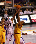 そして第4Qに入ると、一進一退の激しい攻防戦が展開される。積極的にゴールを狙う仙台はFニック・ダーウィッツやFボビー・セントプルーの活躍で1点差に迫ると、G高橋憲一が逆転のシュートを決めた。