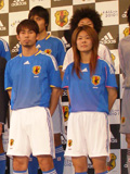 また、女子日本代表とフットサル日本代表は独自のデザインとなった。女子日本代表のユニホームはピンクが特徴で、袖の部分にはなでしこの花が染めこまれた。フットサル日本代表のユニホームは、試合の行われるブルーのスポーツコートに映えるようにエレクトリシティー(蛍光イエロー)が使われている。会見に出席したフットサル日本代表の稲葉洸太郎は「フットサルというスポーツのために特別につくって頂き、嬉しい。(フットサルは)本当にこれからのスポーツだから、(新ユニホームが)アピールになる」と喜びを語っていた。(写真:新ユニホームを着た女子日本代表MF澤穂希<右>)