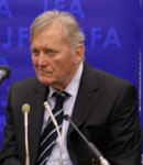 4日、日本サッカー協会(JFA)は、前日本代表監督イビチャ・オシム氏のアドバイザー就任を発表した。契約期間は今年の12月末まで。今後は指導者の養成やユースの育成、海外サッカーの情報収集が主な仕事になる。昨年11月に脳梗塞で倒れて以来、初の会見に臨んだオシム氏は「向こう側の世界から戻ってきました。復帰に際して激励をいただいたみなさんには感謝しています。プロとして努力をしてきたからこそここまでこれた」と喜びを口にした。(写真:元気そうな姿を見せたオシム氏。今後はアドバイザーとして代表をサポートする)