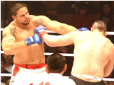 日沖はアメリカン・トップチームの新鋭マニュエルを寄せ付けなかった。立ち上がりから前に出て相手を倒し、マウントポジションをとって動きを封じる。「自分の形になってよかった」。決めにいった腕十字は一度、外されたものの、再び馬乗りになって、主導権を渡さない。最後は三角絞めから、マニュエルの腕を奪って腕ひしぎ十字固めと流れるような攻撃で勝負を決めた。これまで無敗の米国人も「今まで戦ってきた中で一番強い」と脱帽の完勝だった。今大会は期待の新人・山田哲也(しんわトータルコンバット)が敗れるなど日本人の敗退が相次ぎ、「逆にヤル気になった」という。優勝候補にふさわしい4分12秒の戦いに「僕が65kg、日本人最後の砦になります」。最後は力強く宣言した。
