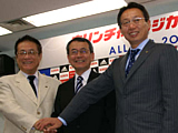 (写真:左から犬飼JFA会長、前田キリンビール執行役員、岡田日本代表監督)