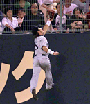(写真:ファインプレーでピンチの芽を摘み取り、リリーフの久保田智之を助けた)
