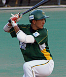 クリーンアップには首位打者を争った中村と国本和俊(享栄高−三重中央大)が座る。中村は右方向にも長打が打て、国本は固め打ちが多い点が特徴だ。またチャンピオンシップでは加登脇が2試合連続ホームランを放ち、好調だ。巨人から戦力外になった後、野手に転向し、高校時代(北照高)に4番を務めたパンチ力が花開きつつある。智勝(桐光学園高−駒澤大)、洋輔(滝川高−大阪経済大−NOMOベースボールクラブ)など07年、08年のグランドチャンピオンシップを経験した主力も脇を固め、短期決戦の戦い方は心得ている。(写真:最終戦で逆転し、首位打者(.344)を獲得した国本)
