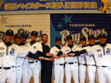 会見後は、テレビ番組の収録で今季10勝を挙げた清水直行が新入団選手と家族の前に登場。「今は自分の成功しか考えていないと思う。そのまま突き進んでほしい。それでうまく行かないことがあれば、自分に何が足りないのか整理することが大事」とエールを送った。史上初となる3年連続90敗以上での最下位に球団の身売り騒動……。明るい話題のなかった横浜だけに加地隆夫球団社長は「真冬から春を迎えようとしている。来シーズンのベイスターズに期待してください」と巻き返しを宣言した。この日、誕生した9つの新星がハマの夜空に光り輝く時、それは現実になる。(写真;最下位の反省から丸刈りになった尾花監督(中央)と新入団選手たち)