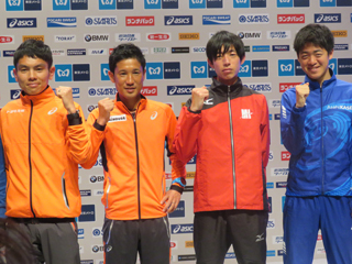 26日、「東京マラソン2016」のプレスカンファレンスが都内で行われ、日本歴代6位の記録(2時間7分39秒)を持つ今井正人(トヨタ自動車九州)、同8位(2時間7分48秒)の藤原新(ミキハウス)、世界歴代2位(2時間3分13秒)のエマニュエル・ムタイ(ケニア)、ロンドン五輪金メダリストのスティーブン・キプロティチ(ウガンダ)ら国内外の招待選手が出席した。昨年の大会で自己ベストをマークし、日本人トップ(7位)に入った今井は「自分自身はチャレンジャー。海外勢にチャレンジしていきたい」と意気込んだ。