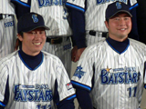 8シーズン目を迎える四国アイランドリーグPlusから、昨年は7選手が10月の育成ドラフトで指名を受け、NPB行きの夢を叶えた。本ドラフトでの指名はなかったとはいえ、これは人数だけでみれば過去最多である。東京ヤクルトの貴重なスーパーサブとして1軍定着した三輪正義(元香川)や、千葉ロッテのクリーンアップも任された角中勝也(元高知)など元アイランドリーガーのNPBでの活躍も増えてきた。彼らに続き、近い将来、1軍でのプレーが期待される新人選手たちを紹介する。(写真:新入団選手発表で活躍を誓った冨田(右)と西森)