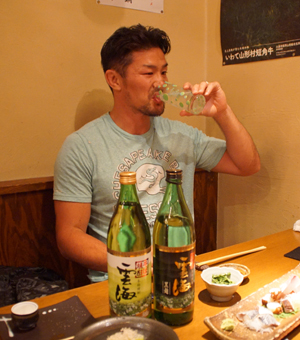 廣瀬: (一口飲んで)これは美味しい! キレのある味わいで刺身にとても合います。焼酎をソーダで割ると飲みやすくて、これなら女性も好みそうですね。そば焼酎のいい香りも感じられてハマりそうです。