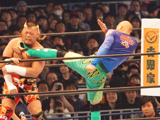 それにしてもバトルロワイヤルではテンコジ(天山広吉選手<写真>と小島聡選手)と絡むことになるなんて本当に人生わからないものだ。現役の頃でさえジュニアだった僕は、ヘビーのお2人と試合することがあまりなかったからだ。あの頃より自分の体重が20kgも軽いのだから、無謀としか言えない挑戦であったが、これが成立するところもプロレスの魅力なのかもしれない。