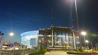 2度追いついての同点劇は非常に見応えがあり、いいゲームを見ることができました。試合後、ライトアップされたスタジアムはとてもきれいでした(写真)。アパートに到着したのは0時を回っていました。これから朝まで仕事です。日本代表に負けじと、メディアも頑張らなくてはなりません!
