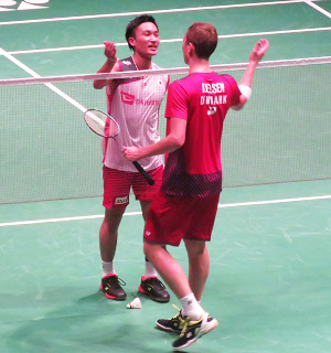 15日、世界バドミントン連盟(BWF)公認のワールドツアー「ダイハツ・ヨネックスジャパンオープン2018」各種目準決勝が東京・武蔵野の森総合スポーツプラザで行われた。男子シングルスは桃田賢斗(NTT東日本)はビクター・アクセルセン(デンマーク)にストレート勝ち。同大大会初優勝へ王手をかけた。日本人対決となった女子シングルスは奥原希望(日本ユニシス)が大堀彩(トナミ運輸)をストレートで破り、3年ぶりの決勝進出を果たした。その他の日本勢は女子ダブルスの福島由紀&廣田彩花組(岐阜トリッキーパンダース)がストレート勝ちで決勝進出。混合ダブルスの渡辺勇大&東野有紗組(日本ユニシス)はストレート負けを喫した。