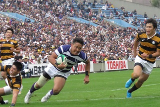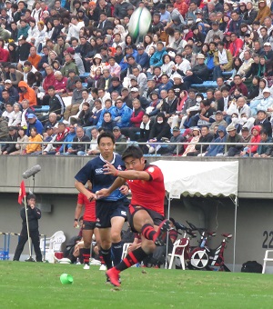 しかし、後半はエンジのジャージーに苦しめられる。5分、WTB長田智希(1年)にトライを許し、初失点。6分後にトライを奪い返し、再びリードを28点差に広げたが、15分にはラインアウトからCTB中野将伍(3年)にもトライを獲られた。