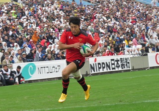 (写真:2年生の快速WTB木村朋也も後半11分にトライ)