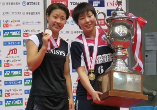 男子ダブルスは世界ランキング3位の園田啓悟&嘉村健士組(トナミ運輸)が、昨年の優勝ペアで同8位の遠藤大由&渡辺勇大組(日本ユニシス)にストレート勝ち。2年ぶり3度目の優勝を果たした。混合ダブルスは世界ランキング3位の渡辺&東野有紗(日本ユニシス)組が、同62位の保木卓朗(トナミ運輸)&永原和可那(北都銀行)組にストレート勝ちし、2連覇した。